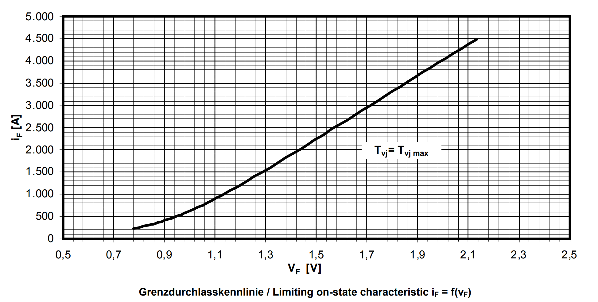 Max Temp: 180C Max Current Average ON @100C: 1230A Threshold Voltage: 0.81V Max repetitive reverse voltage: 1800V Max reverse current: 50mA Forward Voltage @ 800A: 1.063V